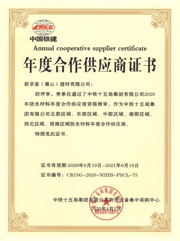 日前,在中鐵十五局集團有限公司2020年防水材料年度合作(zuò)供應商(shāng)評審中,京喜防水榮譽成為(wèi)中鐵十五局集團北部區域、東部區域、中部區域、南(nán)部區域、西(xī)北區域、西(xī)南(nán)區域防水材料年度合作(zuò)供應商(shāng)。京喜防水将深化(huà)與中鐵十五局集團集采合作(zuò),繼續為(wèi)社會輸出高标準防水系統、為(wèi)守護建築文明的使命而努力奮鬥。
