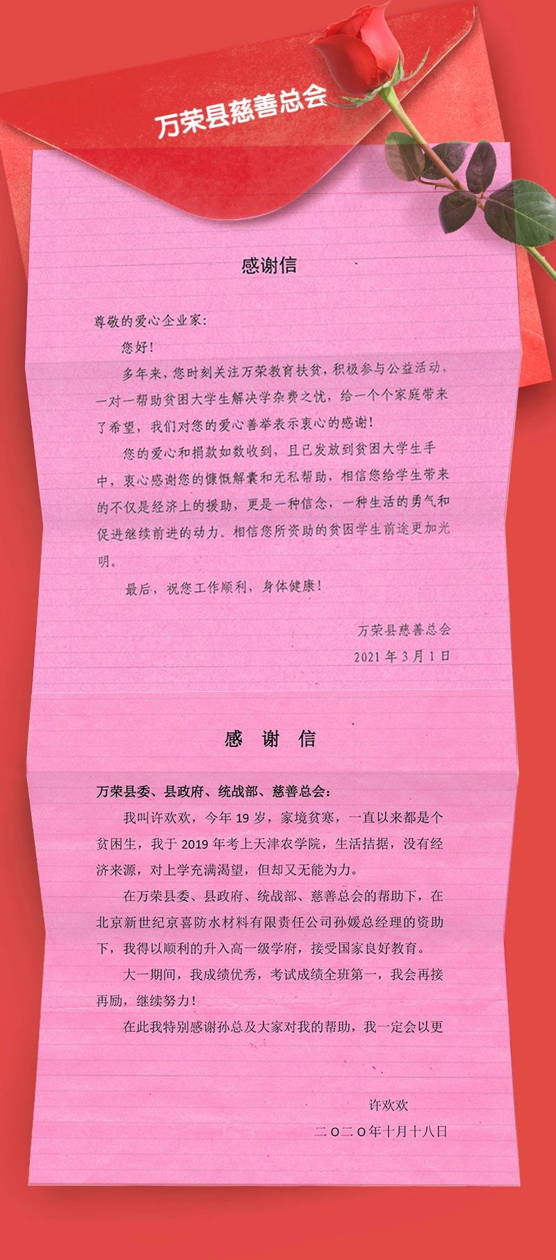 京喜防水一(yī)直用心于既能(néng)為(wèi)企業創造可持續的商(shāng)業價值和前景,又能(néng)讓企業在社會責任等關(guān)鍵問題上(shàng)形成推動進步的正向影響力。多年以來(lái),從老一(yī)輩創始人(rén)舉火(huǒ)抱薪披肝瀝膽的故事(shì)、從創辦企業不忘造福一(yī)方百姓開始,到用更大的能(néng)量用無數真情反哺社會,京喜人(rén)始終葆有企業經營向善向上(shàng)的初心與真誠。