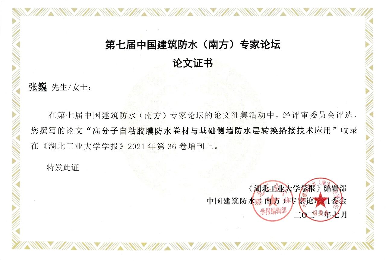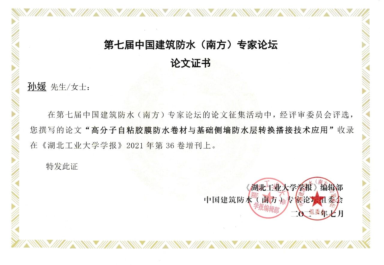2021年7月(yuè)(yuè)17日,由京喜防水撰寫的論文“高分(fēn)子(zǐ)自粘膠膜防水卷材與基礎側牆防水層轉換搭接技術應用”收錄在《湖北工業大學學報(bào)》2021年第36卷增刊上(shàng)。
