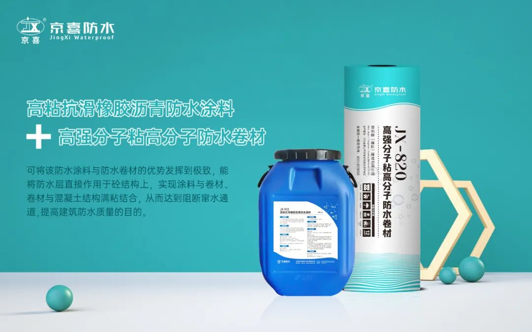 高粘抗滑橡膠瀝青防水塗料+高分(fēn)子(zǐ)防水卷材